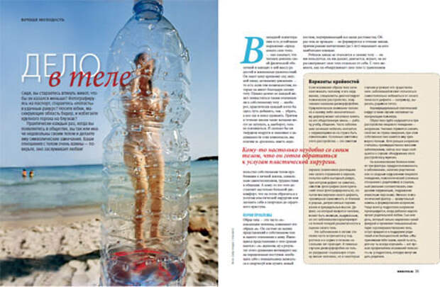 В западной психотерапии есть устойчивое выражение «праздновать свое тело» — оно означает, что человек доволен своей физической оболочкой и находит в ней массу радостей и жизненных удовольствий. Он знает цену крепкому сну, вкусной пище, активному движению — то есть всем тем возможностям, которые он имеет благодаря своему телу. Однако далеко не каждый может похвастаться таким отношением к собственному телу — наоборот, практически каждый хотел бы здесь чуть добавить, там — убрать, а кое-где и вовсе удлинить. Причем в течение жизни такие желания могут не затухать, а, наоборот, только усиливаться. И сколько бы ни твердили подруги и знакомые о надуманности этих комплексов, мы платим за «роскошь» иметь недовольство собственным телом проблемами в личной жизни, сниженным самоотношением, трудностями в общении. А кому-то его тело доставляет настолько большой дискомфорт, что он готов обратиться к услугам пластической хирургии или загонять себя в спортзале до сердечного приступа.
